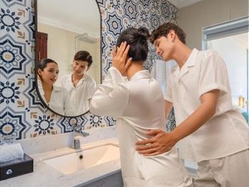 - Сам отель красивый, выдержан везде элегантный стиль. Номера неуставшие, большие и удобные кровати, кондиционер, сейф, чайник, комплиментарно каждый день вода, чай, кофе