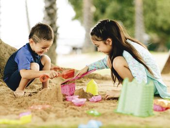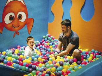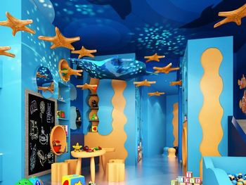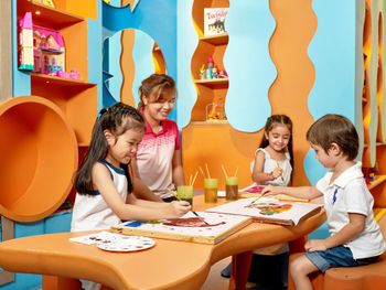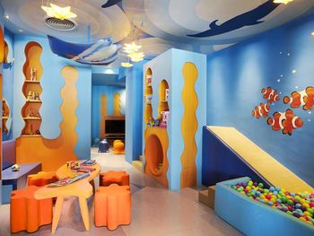 Есть детская комната. Много игрушек, книжек, горка, бассейн с шариками. По расписанию проводят разные занятия. На пляже можно взять бесплатно детские песочные игрушки.