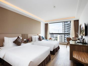 Отель опрятный, не смотря на заполненность постояльцами проблем с ожиданием лифтов не было, хотя жили на 21 этаже. Персонал вежливый и доброжелательный. При бронировании возникла проблема с авторизацией моей дебетовой карты по завершении периода бесплатной отмены брони, но она была быстро решена в ходе короткой переписки с отелем. Заселение прошло без проблем. Заказанный у отеля трансфер из аэропорта обошёлся в 400000 VND, т.е. дешевле такси.