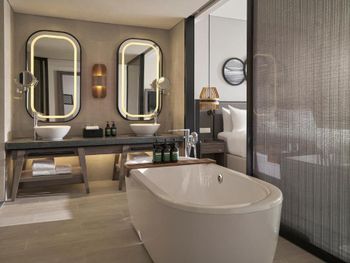 В номерах Crowne Plaza Phu Quoc Starbay, an IHG Hotel установлен кондиционер, сейф и телевизор с плоским экраном. Среди прочих удобств — письменный стол, кофемашина, холодильник и мини-бар, а также собственная ванная комната с душем. В собственной ванной комнате есть бесплатные туалетно-косметические принадлежности. Гостям Crowne Plaza Phu Quoc Starbay, an IHG Hotel предоставляются постельное белье и полотенца.