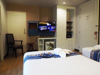 Мы прибыли на три часа раньше Чек ин и я забыл предупредить отель в сообщении. Нас заселили сразу, без ожидания. Персонал очень дружелюбный, сразу начиная с ресепшен. Супер удобная локация. Сразу у выхода из отеля есть кафе и рестораны с лучшими ценами на си фуд и прочее. В 2-х минутах хотьбы большой маркет Патонг Центр. Волкинг стоит в одной минуте хотьбы, но ночью не слышен грохот музыки в номере. На крыше чистый уютный бассейн, где тоже приятно посидеть в тишине. В номерах мебели, дверям конечно требуется ренновация. Но это компенсировано ценой и чистотой. У отеля собственная крытая просторная стоянка. Если вы берете байк или машину на прокат, то легко паркуетесь и транспорт круглосуточно под охраной, а вы спите спокойно, что никто не поцарапает. По такой низкой стоимости вы получаете максимум преимуществ и сервис. Один из лучших на Патонге по соотношению цена - качество. Смело бронируйте👍