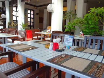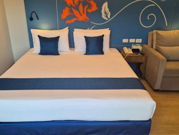 Очень скудные завтраки, рис, сосиски, лапша и все!!! Из фруктов только арбуз и папайя, выпечка 2 вида. Раньше здесь было лучше. И ещё внимательно относитесь к тому, сколько вам приносят в номер полотенец, нас вот обвинили в том что мы украли два полотенца маленьких (30*30 см), а они в номер вместо трех, принесли одно, очень печально, и еще обратите внимание на стаканы, они ставят сколотые, и при одном движение они трескаются, потом вам фото принесут и попросят 100 батт за него. Уборка начинается утром, меня будили пару раз в 8:00, с претензией что я в номере, а им надо убирать. Короче, если хотите помогать отелю материально, то вам сюда! Кроме хорошего месторасположения тут больше ничего нет!