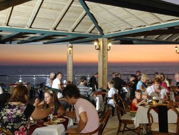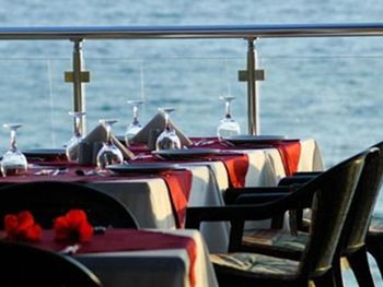 В ресторане столы грязные. Влажных тряпок у официантов нет, растирают грязь сухими бумажными салфетками. За 7 ночей наткнулся на прокисший суп и прокисшие консервированные персики.