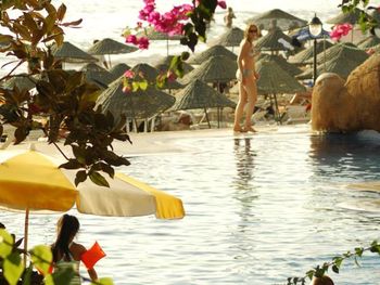 Люди занимают лежаки на пляже в 7 утра, до 7 их к лежакам не подпускают.