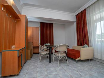 Отель не понравился, не понимаю зачем позиционировать себя как апартаменты, если удобства как в дешёвом отеле (( Путешествовали с годовалым ребенком и при выборе номера приоритетно было наличие миникухни. Так как нужно было варить кашки и супы. Заселили в номер на 9 этаже, но из всей кухни была только раковина и стол с пустыми ящиками. Просили слёзно 3 дня выдать нам плитку, через два дня дали только старый чайник. Клиентоориентированость у них только на турков, русских в отеле больше не было. Через 3 дня русскоговорящая девушка Саша ушла в отпуск и наши просьбы о плите якобы не понимали на английском языке. Номер хоть и большой, но грязный, мебель уставшая. Только на пятый день проживая после наших устойчивых просьб, нам поменяли полотенца и убрали в номере. Мусор на этаже, оставленный старыми постояльцами стоял всю неделю нашего проживания!! И при уборке его даже никто не убрал от лифта. Мы свой мусор постоянно выносили сами вниз в бак. Расположение от моря далёкое, с коляской в одну сторону 20-25 минут. Поначалу ходили два раза в день на море, но потом очень устали тратить почти два часа в день на дорогу к морю. Отель не стоит своих денег, повелись на апартаменты, лучше бы поближе к морю что-то нашли. Никому не рекомендуем