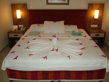 По приезду нам сказали что нашей брони нет и что делать непонятно, нас спасло что там оказалась(случайно) русскоговорящая девушка из другого отеля через неё в течении 3 часов нам удалось заселиться, вся информация что размещена на букинге про отель и номера не соответствует действительности, по фото вроде то но размеры и насыщение по факту другие, номера в жутком состоянии( мы смотрели три) все убитое у нас например из 2 балконных, туалетной и входной двери закрывалась только входная(слава Богу), мы бронировали апартаменты с кухней т.к. готовим сами, кухня есть как помещение а вот утвари плиты чайника нет и хозяин говорит что они предоставляют только комнату все ост за доп плату....Повторюсь только благодаря Лиле из отеля Икиз Клеопатра нам удалось восстановить статус кво В общем если не хотите испортить себе отдых лучше выбирайте отель с рейтингом не меньше 7 и читайте отзывы, и пишите их потом. Всем удачи
