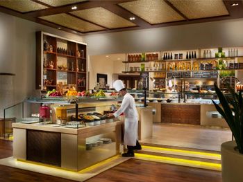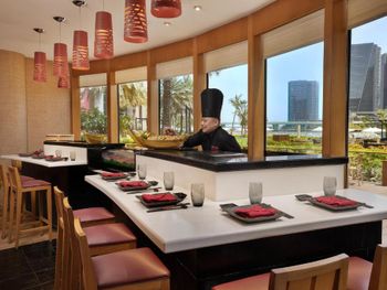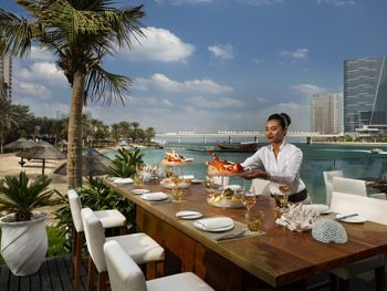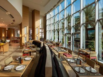 В ресторанах отеля представлен широкий ассортимент блюд континентальной, азиатской и арабской кухни. Различные напитки подаются в лаундже и в баре у бассейна.
