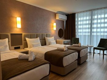 Отель ооочень понравился. На ресепшене огромное спасибо Майе. Очень радушно нас встретила. Вид из номера потрясный!На цветной фонтан и на красивейшие здания. Завтраки вкусные. Готовят по заказу Кашу или амлет, остальное шведский стол. Натуральный кофе и всегда тёплое молоко. Месторасположение отеля очень удобное.Пляж 100 метров.