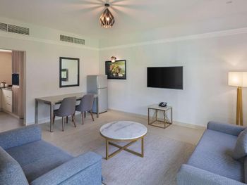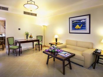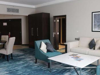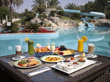Неплохое место для отдыха выходного дня с семьей. Отель не свежий, но находится на ремонте и вероятно скоро освежится (отсюда минусы - см. ниже). Понравился семейный бассейн, территория отеля, бесплатный апгрейд до комнаты большего размера (при этом куда-то пропал балкон, который был в бронировании; на рецепции, однако, предлагали «откатить» комнату до маленькой с балконом). Хороший ужин в ресторане Flavours. В пятницу цена (на человека) составила 95 AED при бронировании либо 120 AED на месте - денег своих стоит.