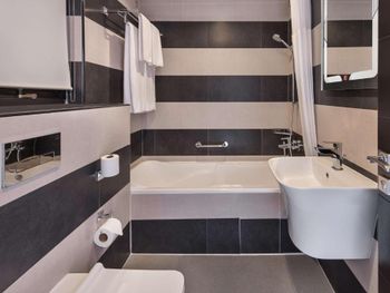 Не смотря на то, что отель достаточно старый, он старается держать марку, мб не так хорошо, как хотелось, но старается. Номер был просторный и все необходимое в нем есть. Порадовал отдельный нормальный фен. Спасибо за это. Завтрак был хороший, выбор есть, мы ожидали меньшего. За 1-3 не успеет надоесть. Есть отдельный бассейн для взрослых и детей. Корты для тенниса. Персонал был очень дружелюбный, ребятам из ресторана отдельное спасибо. Не смотря на сложную работу, все с хорошим настроением. Есть большая парковка.