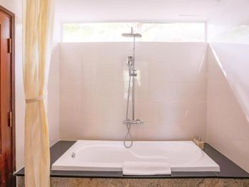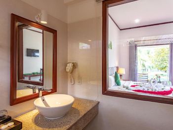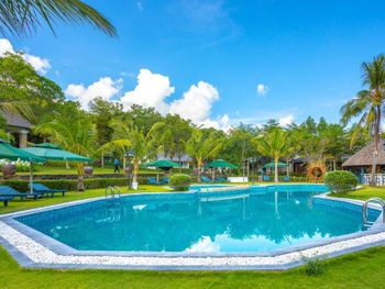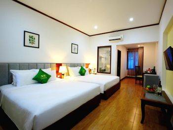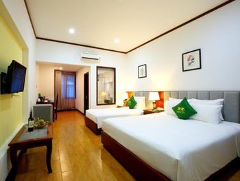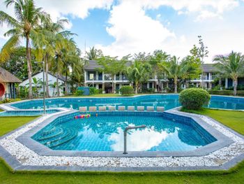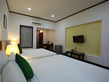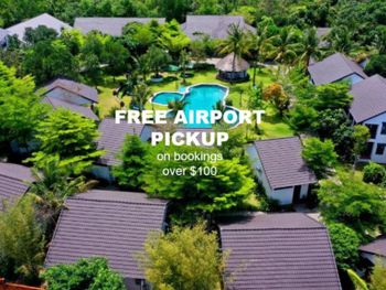 Попали сюда совершенно случайно. Отель, который заказали заранее, совсем не подошёл. Пришлось новый искать оперативно. Этот отель предложил одну из самых низких расценок при отличных отзывах. Рискнули, взяли трехместный номер. Рискнули потому, что то что дешевле обычно хуже. В этот раз наоборот. Удивительный обходительный отзывчивый персонал. Хороший номер. Большой чистый бассейн. Зеленая просторная территория. Кондиционер мощный. Есть и недостатки и проблемы, но они с помощью персонала решаются. Из нерешаемых - отсутствие рядом, в пешей доступности, приличных ресторанчиков и магазина. Но такси недорого, приезжает быстро - флаг вам в руки. Рядом с отелем отличная прачечная. Самолетов, что садятся на аэродром в трехстах метрах, совсем не слышно.