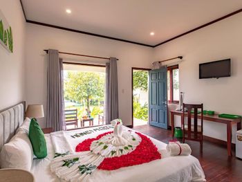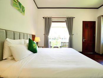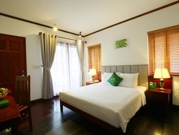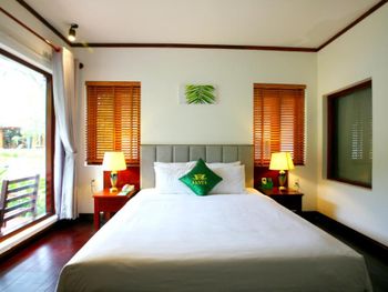 Проживали в сезон , в декабре . Ресепшен. Очень приветливые ребята , встречают с улыбкой . Заселение произошло ранее 14.00 , без всякой доплаты . Депозит не берут никакой . Территория хорошая , ухоженная и очень зеленая . Попадаешь в маленький оазис . Номер : площадь стандартная , для размещения двоих . Пастель белоснежная, кровать огромная , матрац очень жесткий , подушки вполне удобные . Кондиционер работал без перебоев , не шумный .Ванная комната : в Балийском стиле , с естественным проветриванием . Сантехника очень хорошая . Нет плесени . Иногда по ванне бегали гекконы . Они безобидные и не доставляли неудобства . Уборка ежедневная , приемлемая , все душевые принадлежности доставляются ежедневно . Так же чай и кофе тоже . Имеются хорошие белоснежные халаты и многоразовые тапочки . Холодильник морозит хорошо . Телевидение только местное . Есть сейф . Персонал ненавязчивый и при любой просьбе отзывается моментально . При отели так же есть прокат байков , что очень удобно -150 тысяч донгов в сутки . Бассейн : глубина 1,6 м и отдельная чаша для детей . Есть 6 лежаков при нем . Бар не работает . Завтрак : если это блюда на выбор не в сезон , то стоимость 100 тысяч донгов с человека . Если шведский стол , то 200 тысяч с человека . От отеля до автобусной остановки метров 300-400. Оттуда ходит бесплатный автобус, но до остановки нужно еще дойти . До главного супермаркета острова кинг-Конг 3 остановки на автобусе.
