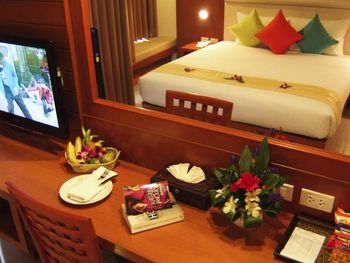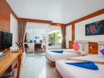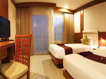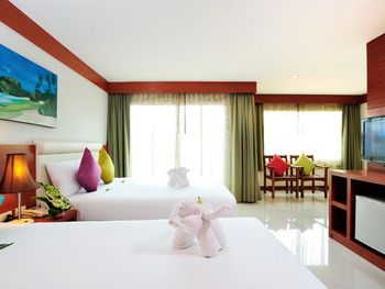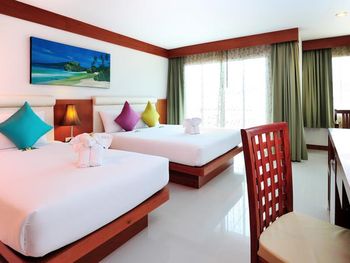 Этот курортный отель расположен всего в 50 метрах от пляжа Карон. К услугам гостей бассейн на крыше с панорамными видами на городской пейзаж Пхукета. В номерах есть отдельный балкон и бесплатный Wi-Fi.