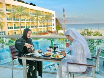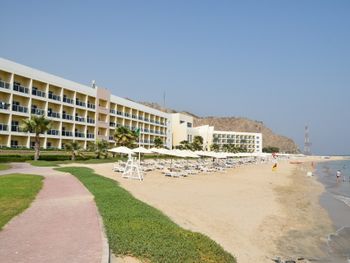 Отель в спокойном месте, с широким песчаным пляжем и массой удобств. Есть детская площадка, детский клуб, игровая комната, проводится детская дискотека - нам с маленьким ребенком это очень понравилось. Персонал очень вежливый и внимательно реагировал на наши просьбы. При заезде сами припарковали нашу машину и бесплатно повысили уровень номера. Если размещение на условиях полупансиона - недалеко город Дибба, с большим супермаркетом Лу-Лу, где можно купить продукты, фрукты и т.п. На ужин заказывали воду в больших бутылках - нам эту опцию сделали бесплатной. Еще 4 бутылки по поллитра воды в день приносят в номер. На Новый Год была большая красивая елка, очень здорово все было украшено. На пляже - мягкий песок, удобные шезлонги, всегда хватало мест, несмотря на обилие отдыхающих