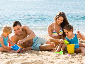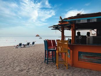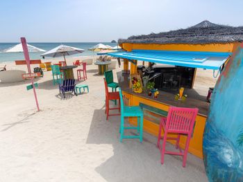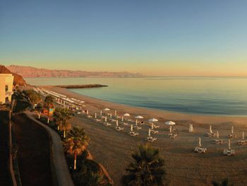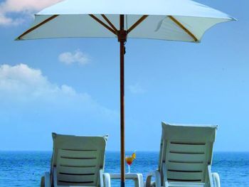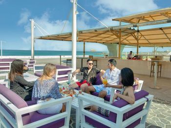 + На пляже- шезлонги, зонты и пляжные полотенца.