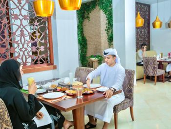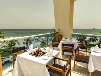 + помимо кафе со шведским столом на территории есть кафе с едой по меню. Еда в нем вкусная. Цены для ОАЭ- средние. Ещё есть заказ еды в номер, но мы не успели им воспользоваться.