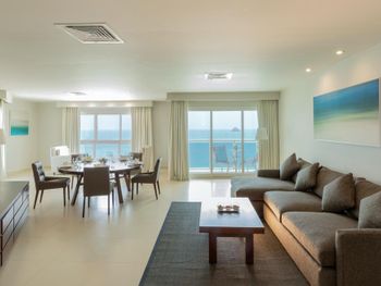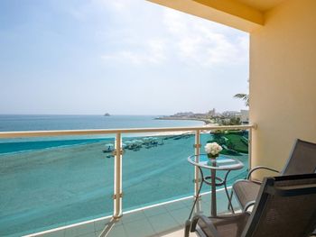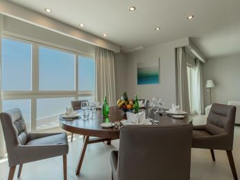 + расположение - на побережье. Очень близко к воде. Приятный берег- широкая береговая линия, песок, лежаки и зонты. Идеально для семей с детьми. Рядом горы. Красивый вид. Очень хороший воздух. Вода- очень чистая.