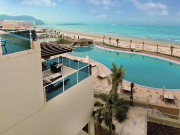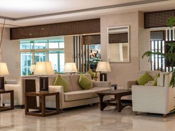 Расположение отеля - ужасное - от моря до рядом расположенных гор мало места и потому отель растянут вдоль моря, а главное вдоль дороги и потому круглые сутки слушаешь шум проезжающих машин. Ночная подсветка практически отсутствует - по одному фонарику на пальму только - остальное все погружается во мрак с наступлением ночи. Бассейны светятся и это хоть как то сглаживает впечатление. Но только в одном из четырех бассейнов работает подогрев и зачем то до 32 градусов - почти горячий - народ там сидит часами не вылезая - ну и в туалет видимо ходит там же. Фильтрация при этом не работала - борт инфинити был сухой сколько я не смотрел. Остальные три бассейна для моржей - запрыгнул и выпрыгнул, вдобавок еще и два из них практически всегда закрыты потому что спасатель отсутствует. Питание в столовой терпимо - но слабее гораздо чем в отелях неподалеку - Фаермонт Интерконтиненталь Мирамар и тд. Небольшой выбор блюд которые еще успевают заканчиваться - в один из завтраков я тупо так и не дождался обычных варенных яиц. Что касается персонала - то его явно недостаточно - официантов и спасателей можно было бы побольше поставить. При заезде в нормальную пятерочку я обычно подьезжаю ко входу и отдаю ключи от машины - потом встречаю свои вещи уже в номере - тут пришлось искать парковку ждать полчаса пока придет носильщик который покажет где мы проживаем - в ответ на просьбу поторопиться - девушка на рецепшене просто откровенно нахамила нам. В номерах заявленных принадлежностей не оказалось - халаты посуду все пришлось просить ну и платить каждый раз чаевые - несли по два халата за раз) а номер был на шестерых. Может быть если вы купили путевку через туроператора и с опцией все включено да еще и дешево - этот отель покажется нормальным, но лично я и мои знакомые сюда ни ногой больше - просто гадюшник при этом он еще не сильно дешевле нормальных отелей - процентов 10-20 от силы но хуже раза в два своих конкурентов - так что не стоит вестись на цену - пожалеете.