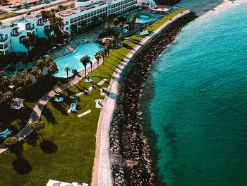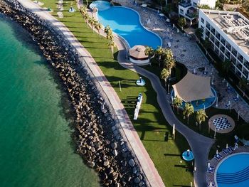 Большая зона для плавания на море, большая территория с несколькими бассейнами.
