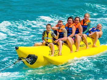 На территории есть какие-то платные морские развлечения, но все очень дорого, никто ими не пользуется.
