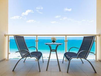 На территории был магазин алкоголя с нормальными ценами, также вид на море из всех номеров отеля, слышен шум волн.