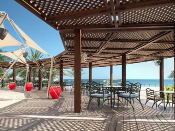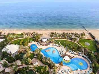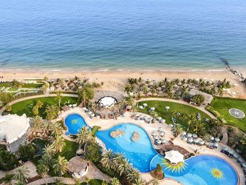 Хороший песчаный пляж + наличие бассейна, возможность расположиться комфортно (даже если пляжные лежаки уже заняты) и поплавать (даже если океан сильно взволнован, как во время Аравийского шторма в апреле 2024)