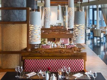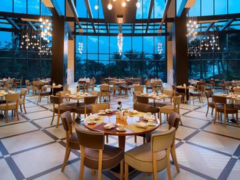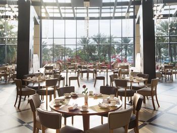 В главном ресторане отеля Le Meridien Al Aqah подают завтрак, обед и ужин, включая тематический «шведский стол». Есть также индийские и тайские рестораны, а также ресторан на пляже, где можно поужинать на свежем воздухе.