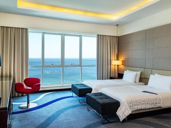 Насладитесь великолепным сервисом в Le Meridien Al Aqah Beach ResortПятизвездочный отель Le Meridien Al Aqah с роскошными удобствами расположен в отличном месте с панорамным видом на Индийский океан с одной стороны и горы Хаджар с другой. По запросу для гостей организуют трансфер от/до аэропорта.