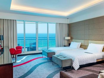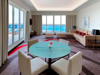 Персонал ничего толком не объясняет, с оплатой запутали, такси утром забыли подтвердить, еле успел в аэропорт, а самое главное привезли не в тот аэропорт! И даже не спросили какой мне нужен! Цены на еду и напитки неадекватные. Кружка пива примерно 800 рублей (46 AED), бокал вина (50 AED), бургер 2000 рублей (103 AED). Отель с виду впечатляет, но в нутри достаточно скромно и дешево. Ковролин в номер грязный. Убирают редко и не сильно стараются. После того как попробовал оставить чаевые - чуть улучшили уборку. Клубные этажи вообще не берите. Ничем не отличаются от обычных. Детям брал обычный, нам клубный. Все отличие бесплатный кофе и бутерброды в холле, картина на стене) и беспроводная акустика. Все остальное полность совпадает, за исключением цены. Цена значительно выше.