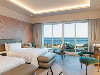 Девушка на ресепшене обновила нам бесплатно номер и сделала с видом на море, это было потрясающе 🌊🩷. Нам все очень понравилось, бассейн прям классный, большой , нет скопления людей из-за размеров больших , пляж чистый, все предусмотрено. Для детей игровая комната, где можно их оставить поиграть, территория ухоженная . Всем рекомендую 🌷