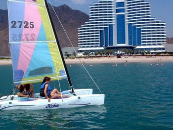 Нам очень не повезло с морем - мы приехали только на 4 дня - поплавать, в том числе с маской у острова Черепах. Первый день была ужасная зеленая вода - грязная и мутная, нам сказали, что такое первый раз у них. И правда на следующий день вода очистилась. Но оказывается мы попали в сезон сифонофлор! Это такие невидимые медузообразные нити, которые жалят нестерпимо! Это что-то ужасное - в воде можно находиться только 5 минут - жалят как крапива - выскакиваешь на берег и краснота и раздражение на коже и жжение нестерпимое. Первый раз в жизни попала на такой пляж! Плавала до острова черепах - минут 10 вплавь, была вся изжалена. А так вода теплая. Но не сравнится с голубой водой Дубая! Вода отнюдь не голубая. Пока дошли до острова Черепах, прошли по всему берегу мимо других отелей. Там, где нет отелей - берег грязный , мусор валяется, неужели трудно убрать прилежащую территорию? На берегу около острова Черепах - вообще помойка. Далее что нам не понравилось - цены. Перевожу в рубли - одно пиво 700 руб , холодный кофе типа фраппе - 700 руб, бокал белого вина - около 800 руб! Обед шведский стол - 2300 руб на человека. Мы с сестрой тратили на обед шведский стол с 2мя бокалами вина - ок. 100$! Полупансион или все включено - обязательны в данном отеле! Рядом с отелем ничего нет, пойти некуда. Поехали в Фуджейру - отель предоставляет автобус пару раз в неделю - думали погуляем по городу, посмотрим, пообедаем - нас привезли в торговый центр на отшибе! Ехать в одну строну час и даже не увидеть город! В общем минусов больше, чем плюсов.