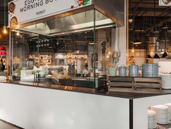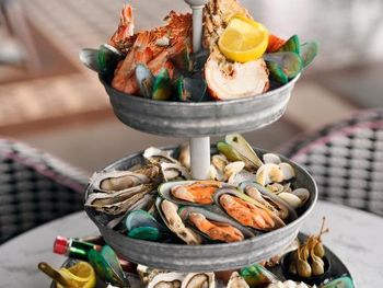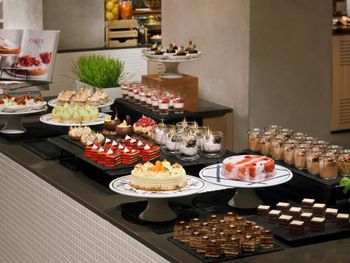 По утрам гостям подают завтрак «шведский стол», континентальный завтрак или азиатский завтрак. При Mövenpick Resort Al Marjan Island работает ресторан, где подают блюда американской кухни и блюда французской кухни. По запросу для гостей приготовят вегетарианские, халяльные и веганские блюда.