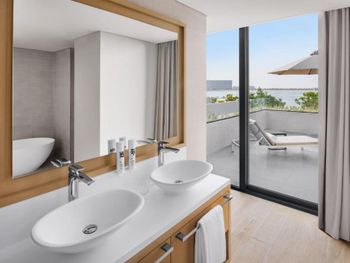 В целом отель очень хороший, чистые номера, вид, постель белоснежная , бар, чайник, вода в номере , халаты . Все новое. По еде поставлю 4+ обед лучше чем ужин. Завтрак скромный. Но свежие кроосаны отвал бошки 😉. Территория очень живописная и ухоженная . Из минусов когда есть с чем сравнить это лежаки не мягкие, и с обслуживание так себе. Номер не убрали во второй день , хоть и нажала кнопку уборка номера. А так в целом рекомендую. Со отношение цены и качества 5