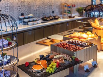 Завтрак на ЧЕТВЕРКУ! Нет рыбы, скромный выбор сыров колбас, мало фруктов, в горячих блюдах больше ориентация на локальные вкусы. Мало соков, и даже на период ТЭТ не было игристого вина.