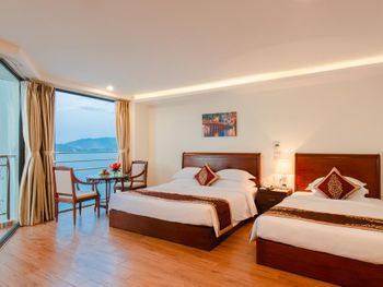 Проживали в этом отеле с 20 по 24 февраля,заселили нас в 12-00. Номер 1501 огромный, с балконом и видом на море, номер 1504 меньше, с двумя отдельными кроватями , там жили наши дети, тоже с балконом. Номера современные, в номере есть все необходимое, большой телевизор, сейф, Ванная комната огромная: есть и душ и ванная. Завтраки вполне : яичница, бекон, овощи, курица в соусе, суп фо, оладьи, джемы, кофе, сок, фрукты. В отеле есть небольшой бассейн на 7 этаже, полотенца на пляж выдают на ресепшене. Отель находится на улице, проходящей перпендикулярно морю. На ней есть хороший супермаркет, кафе: “вьетнамская кузина» и «Москва», это из тех которые мы посетили , рядом с отелем кафе где платишь 240 тысяч донгов , шведский стол с морепродуктами , в него мы не ходили, но наши соотечественники очень его любят, там всегда музыка и дискотека по вечерам. Также были на массаже в салоне не далеко от отеля, при каком то отеле : договаривались на 80 тысяч массаж ног, 200 -массаж тела.