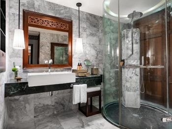 В некоторых номерах имеется собственный просторный балкон с прекрасным видом на Андаманское море. Большие номера со вкусом обставлены современной мебелью и оснащены телевизором с плоским экраном, а в роскошных ванных комнатах установлены ванны.