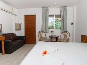 Отель небольшой, приятная территория, хороший чистый бассейн, на территории гамак, качели плетеные, горка в бассейн. Лежаки, стулья, столики у бассейна. В минуте от отеля 7/11, массажные салоны, дорога, где тук-туки ходят, можно уехать куда угодно. В отеле в основном немцы отдыхают. До моря идти в обход всех отелей, дорога занимает минут 12-15. Кафешек для себя по близости мы подходящих не нашли, но их там много) Персонал в отеле очень внимательный. Очень понравилось, когда мне предложили графин для горячей воды, чтобы я не наливала горячую воду в пластик, потому что это вредно( были с ребенком, нужна была вода для разведения смеси). Завтраки очень вкусные, стоимость 100 бат. Пробовали в других кафе, ценник от 150 и выше, а по качеству некоторые порядком уступают по наполненности. Постельное чистое, белое, что удивило, постельное меняют КАЖДЫЙ день! Из предметов гигиены кладут только мыло. С водой проблем нет, стоят нагреватели в каждой комнате, что тоже встречается редко. Wi-fi работает на всей территории ( и в номерах, и на бассейне, и в лобби), конечно не всегда прям супер ловит, но полазить в соцсетях хватает. Спасибо за наш отдых, нам очень понравилось.