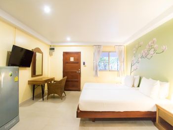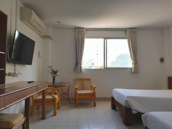 Хорошее расположение. Рядом дорога,где ходят сонгтео , через дорогу много мест,где можно вкусно поесть, не далеко рынок. В отеле очень дружелюбный персонал, уборка и замена полотенец ежедневная. Сам номер просторный. В номере есть тарелки, стаканы, чашки, столовые приборы. Термопот с горячей водой и микроволновка у ресепшена. За 100 бат можно заказать хороший завтрак. Отель находится в тихом месте, но в тоже время в пешей доступности от моря.