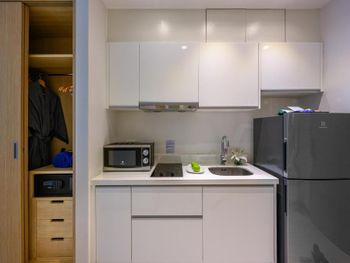 - небольшая Кухня с плитой и свч (очень удобно исходя из не очень удачного расположения отеля)