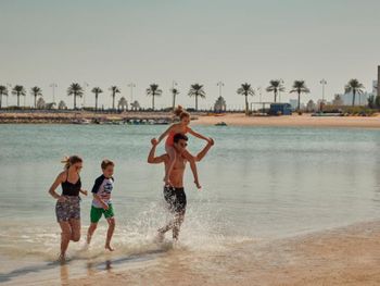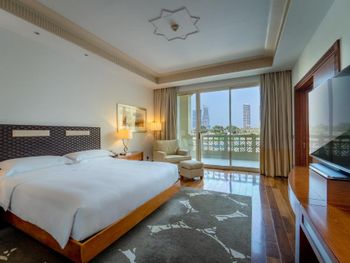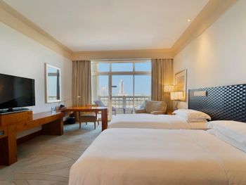 Отель соответствует 5 звездам. Большие номера с балконом( что для Дохи редкость), очень удобные кровати и есть выбор подушек. В номере халат,тапочки, гель для душа, мыло,крем для тела.Чайник,чай и кофе. Ежедневно приносят по бутылочке воды.Завтрак очень хороший и разнообразный. Свежевыжатые соки, соевое и миндальное молоко,безглютеновый хлеб- все есть на любой вкус и предпочтения. Полотенца выдают у бассейнов и на пляже. Правда, на море дно илистое,но нам это не мешало. Очень хороший отель,вернемся сюда обязательно!