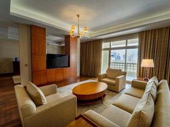 С балконов номеров открывается вид на Персидский залив или центр города Доха. Все номера оформлены в современном стиле. В числе удобств некоторых номеров кухня и гостиная зона.