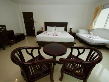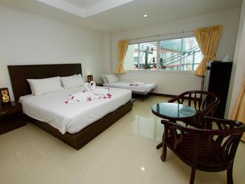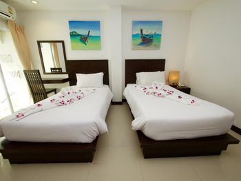 Расположение в целом неплохое, можно спокойным шагом дойти до пляжа минут за 12 - 15. Рядом магазины и хорошая фруктовая лавка. В целом комната неплохая. Претензий к качеству постельного белья нет. Персонал на ресепшене отзывчивый. Можно заказать минивэн в аэропорт, стоит 250 бат на человека.