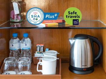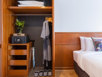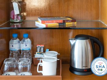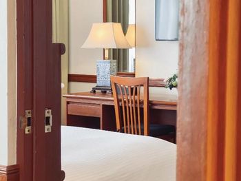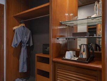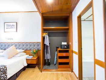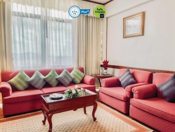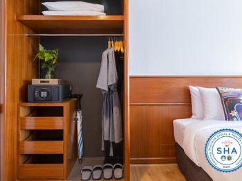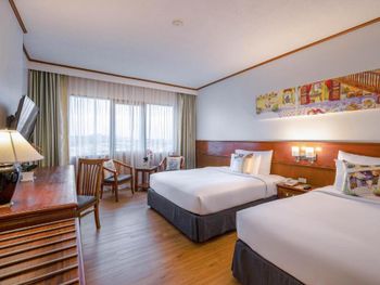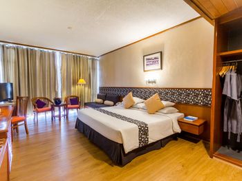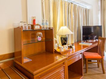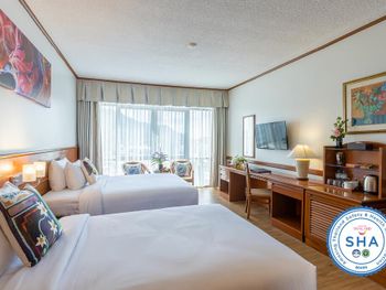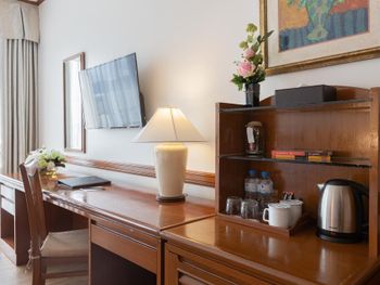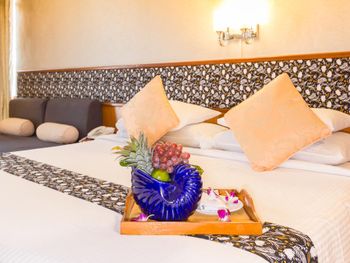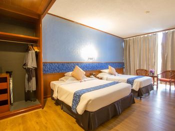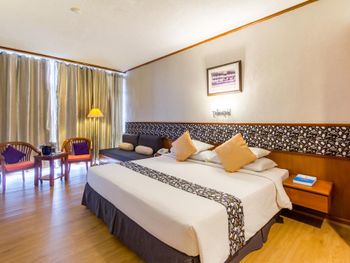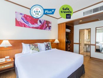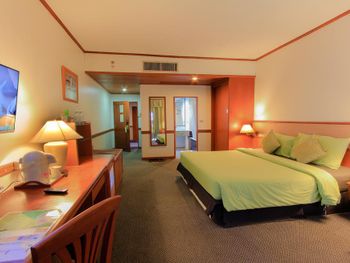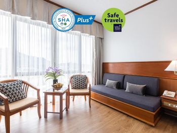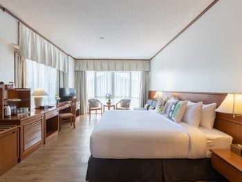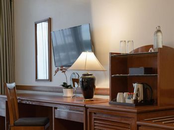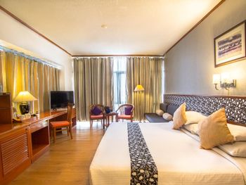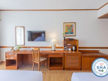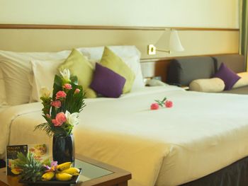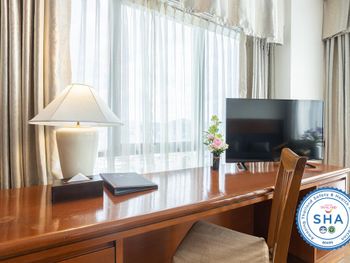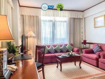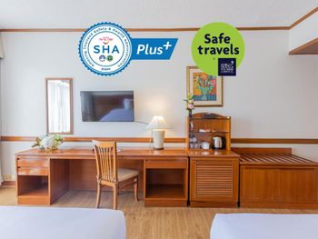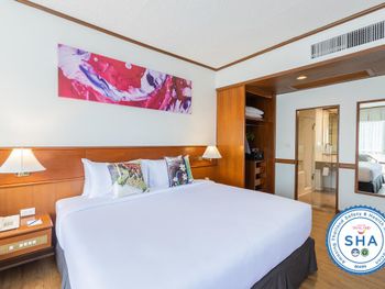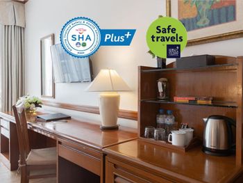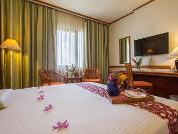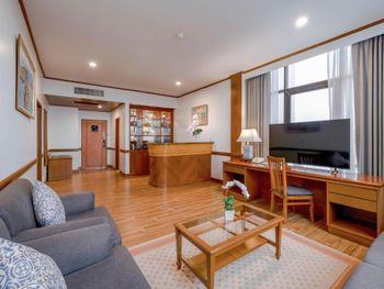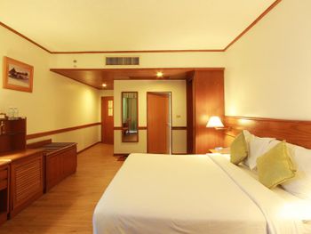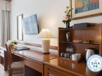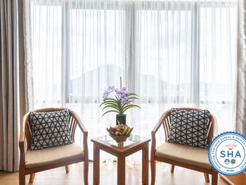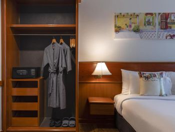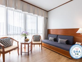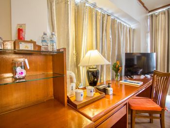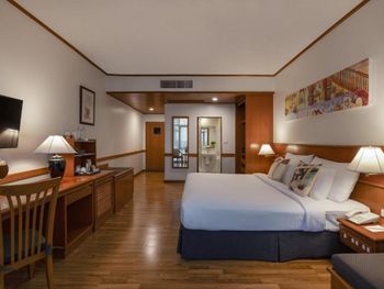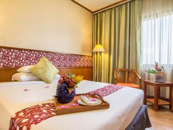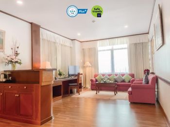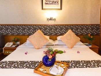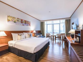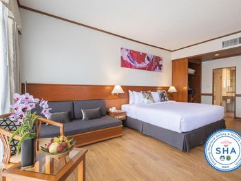 Номера отеля Royal Phuket City оформлены в классическом стиле с яркими тайскими акцентами и оснащены персональным сейфом и телевизором со спутниковыми каналами. В числе удобств — гостиная зона.