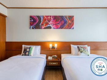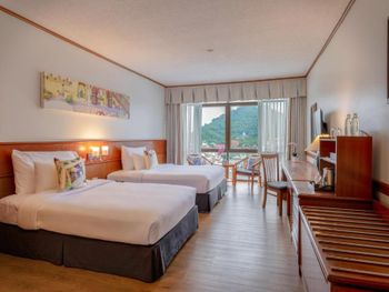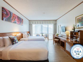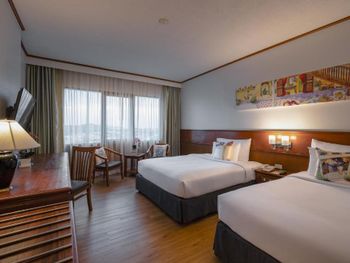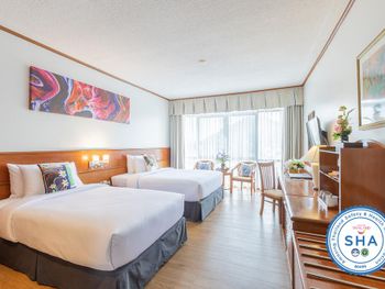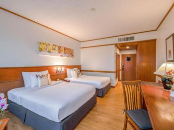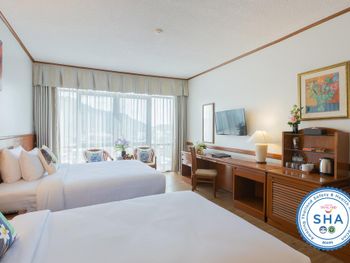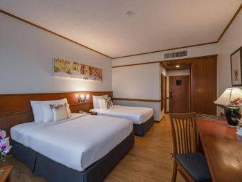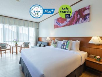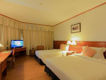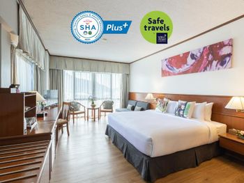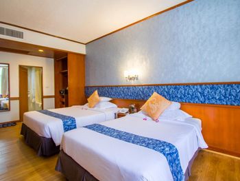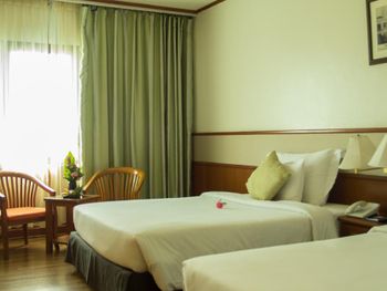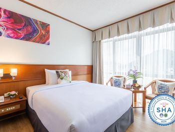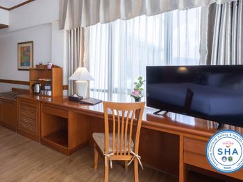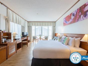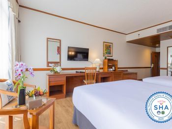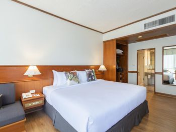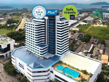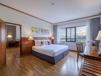 Хороший большой отель, мы снимали улучшеный номер за 2,300 бат за ночь, на 17 этаже. Отличный вид из окна. Очень удобная кровать и подушки. Чистая постель. Имеются все гигиенические принадлежности, халат. Было тихо, ничего не мешало спать (но сначала шумела вентиляция, которую мы отключили и стало тихо) Отличный завтрак. Приветливый и отзывчивый персонал. Открытый бассейн на 3 этаже, там же большой тренажерный зал. Близко пирс мин 8-10 на такси, рядом старый город, можно прогуляться.