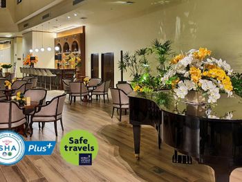 Удобное расположение, основные туристические места рядом Просторный номер Большая удобная кровать Красивый лобби, по вечерам живая музыка Завтрак на высоком этаже с красивым видом из окна