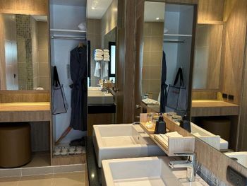 А теперь минусы, или несоответствия: - номер для двоих, в ванной комнате всего 2(!) полотенца! Это по одному на человека!! Это в категории 5 звезд! Был момент когда во время уборки забрали полотенца и чистые не положили, я выловила горничную в коридоре и попросила принести, на что мне сказали, sorry, они в прачечной, будут после 18...забрали их в 14.00 и принесли в 20.10... печально( - вернемся снова к ванной комнате, повторюсь, что номер для двоих, из рыльно-мыльных принадлежностей только маленькая пробирка шампуня и геля для душа, в количестве по 1 шт(!) , а нас двое! На этом все, не было даже мыла, его доложили позже, хорошо у меня свое было. - выбирая номер по фотографиям мне понравилось, что у меня будет возможность лежать на лежаке возле своего бассейна у номера, при заезде никаких лежаков не оказалось, но в остальных корпусах и у соседей они стояли, я пошла разбираться, мол где мой sun-bed, но на ресепшн мне развели руками и сказали sorry madam...на мой вопрос почему их нет, я не получила ответа. - так же забывали докладывать чай и кофе, приходилось караулить уборку и следить чтобы положили. - вопрос касаемо кухни, для чего мне в номере плита, если нет вообще никакой посуды, ни ложки, ни вилки, ни тарелки...вот это самое странное было. - так же в описании номера было, что будут тапки/халат/ пляжное полотенце...но увы..