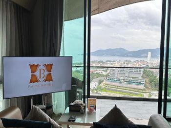 Превосходный номер, я бы сказала апартаменты, есть микроволновка, плита, вытяжка, кондиционеры работают тихо и исправно, телевизор большой, вид из номера шикарный, полы настолько чистые, что аж скрипят, уборка каждый день, кровать огромного размера, средней жёсткости матрас, удобно! Несколько раз в день возили и забирали в центр/с центра, расписание трансфера выдавалось с ключами. Крайне удобно