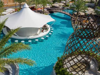 Проект на "отлично", реализация на "двоечку". Отель отделан очень дешевыми материалами и не квалифицированными строителями. Отель молодой, но уже все отваливается: трещины на стенах, трескается и отваливается кафель в душевой, в комнатах на полу и в бассейне (опасно купаться). Я думаю, что архитектор бы за голову схватился, увидев как реализовали его проект. Ко всему прочему: много отдыхающих молодых европейских невоспитанных арабов (про релакс у бассейна можно забыть), а также много китайцев на завтраке, присутствие которых превращают окружающую обстановку в чавкающую и кричащую харчевню!