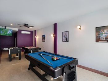 Наличие игровых комнат, комнаты развлечений (бильярд), новые телевизоры, огромные кровати, огромные номера.