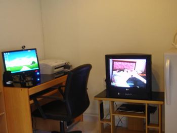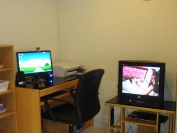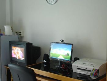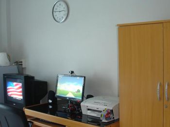 Также во всех номерах имеется персональная ванная комната, мини-бар, кабельное телевидение, компьютер и принтер.